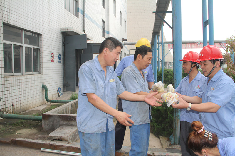为让职工在工作岗位上度过一个愉快的中秋节,感受到家的温暖和领导的关爱,9月15日热电公司开展了"迎中秋 送温暖"活动,给节日期间仍坚守在岗位上的200多名职工送去了月饼、苹果。