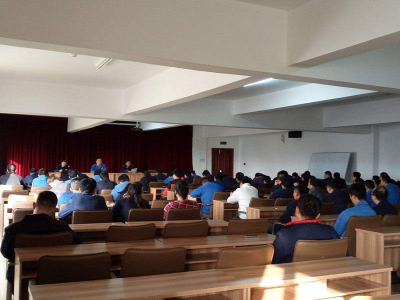 11月12日上午,金威热电在新35KV会议室召开《保生存 谋发展 大干四十天》的形势任务教育动员会,全面分析了公司近期发展中的困难与形势,展望了公司下步发展的愿景,动员公司上下坚定信心,牢固树立安全第一,环保并重的思想,积极行动起来完成改造任务和安全目标。会议由党群工作部主任渠立国主持,副总工程师戴传华传达了国家环保政策和新的锅炉烟气排放标准及公司当前进行的环保改造工作进度,总经理王允来讲话。